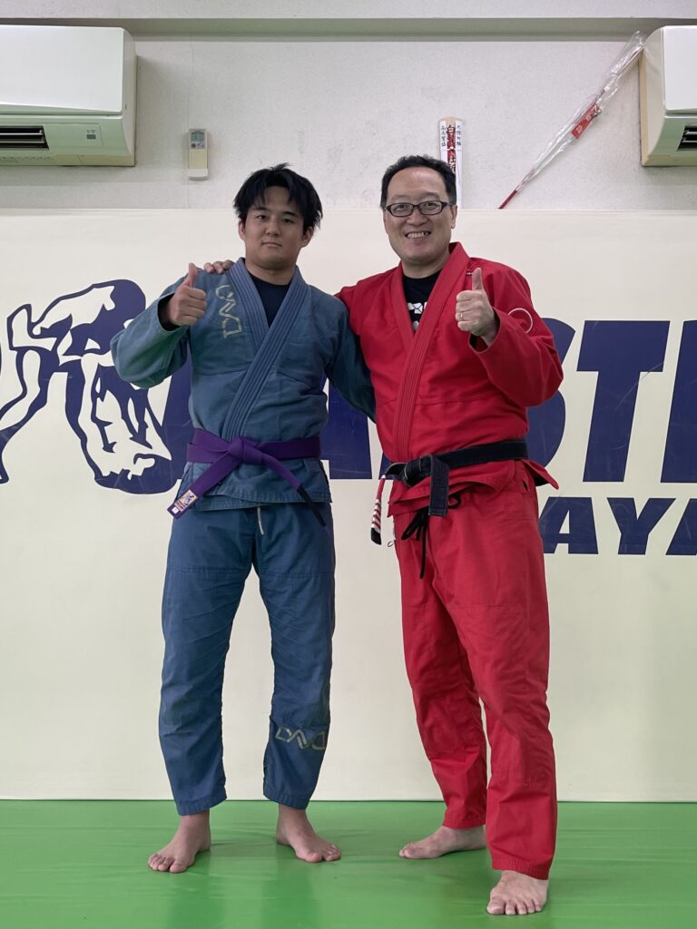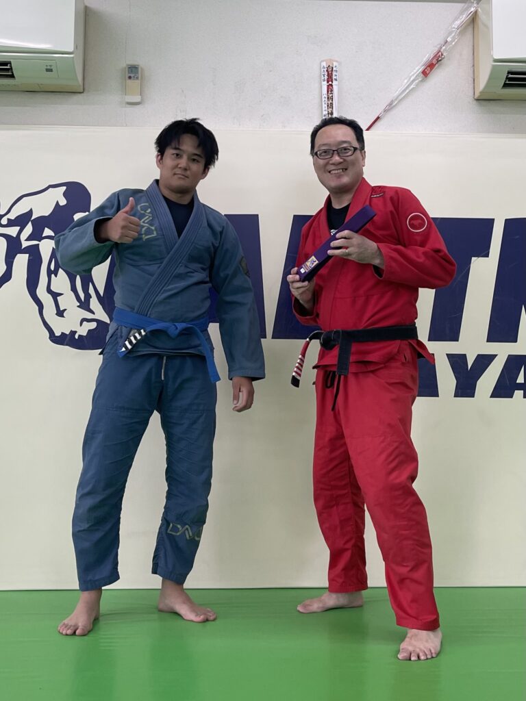 昨日のパラエストラ綾瀬・柔術クラスにて、西田君の腰に紫帯を巻きました。