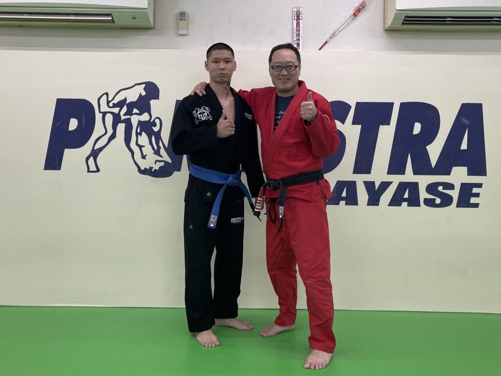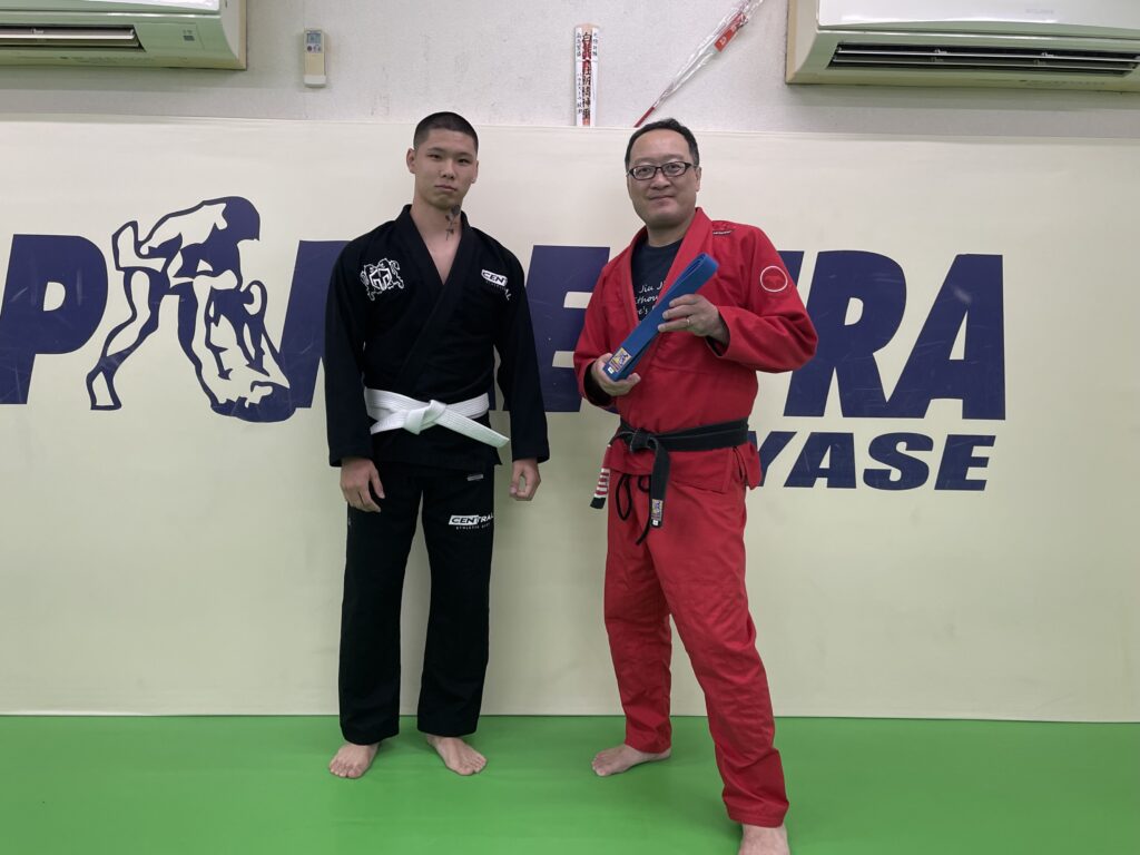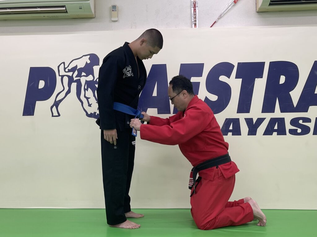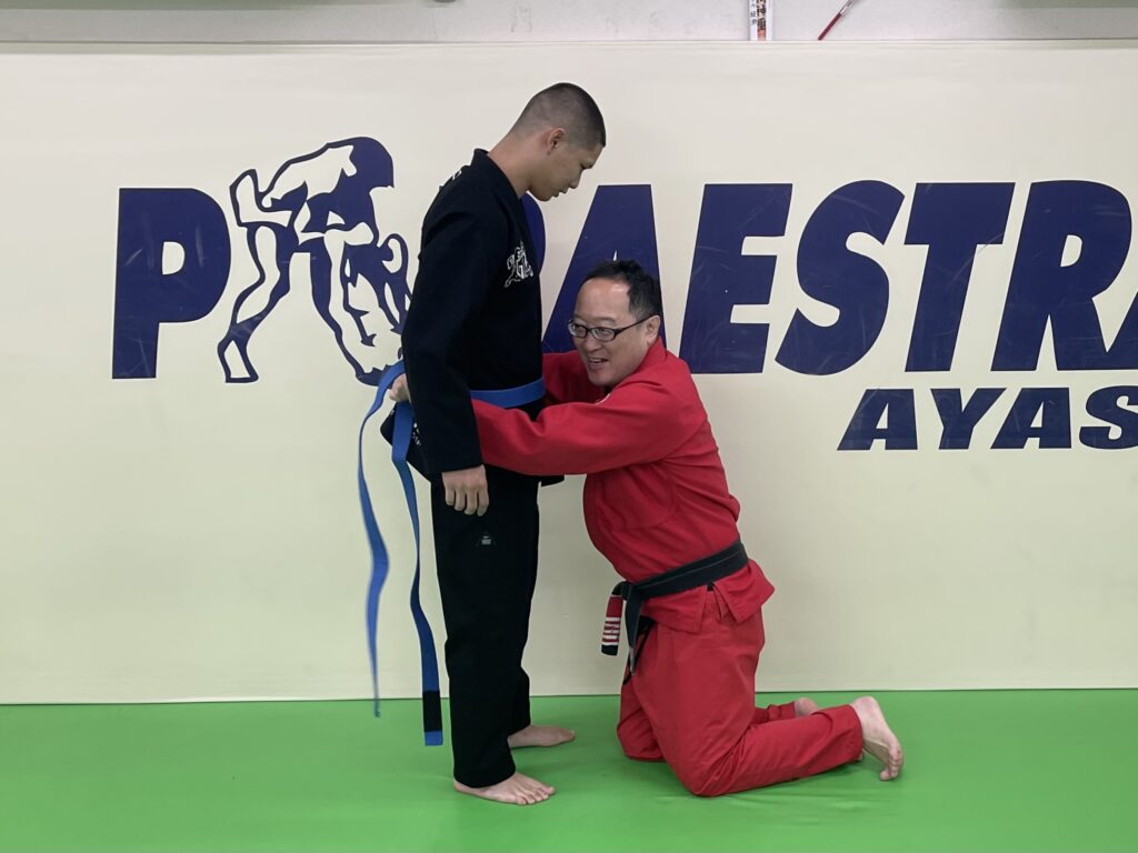 昨日のパラエストラ綾瀬・柔術クラスにて新海君の腰に青帯を巻きました。