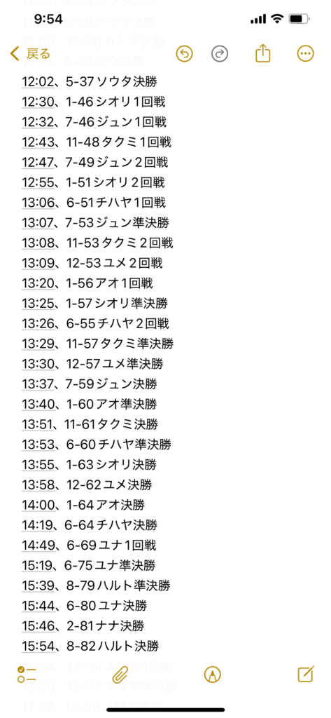 勝った子も負けた子も皆それぞれ頑張っていました。全14面で時間も分単位で重なっていたため僕がセコンドに入られない試合があったことが心残りです。