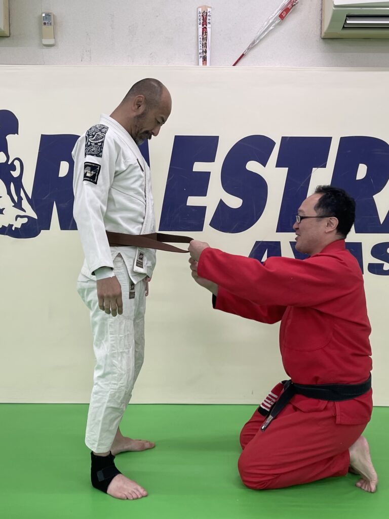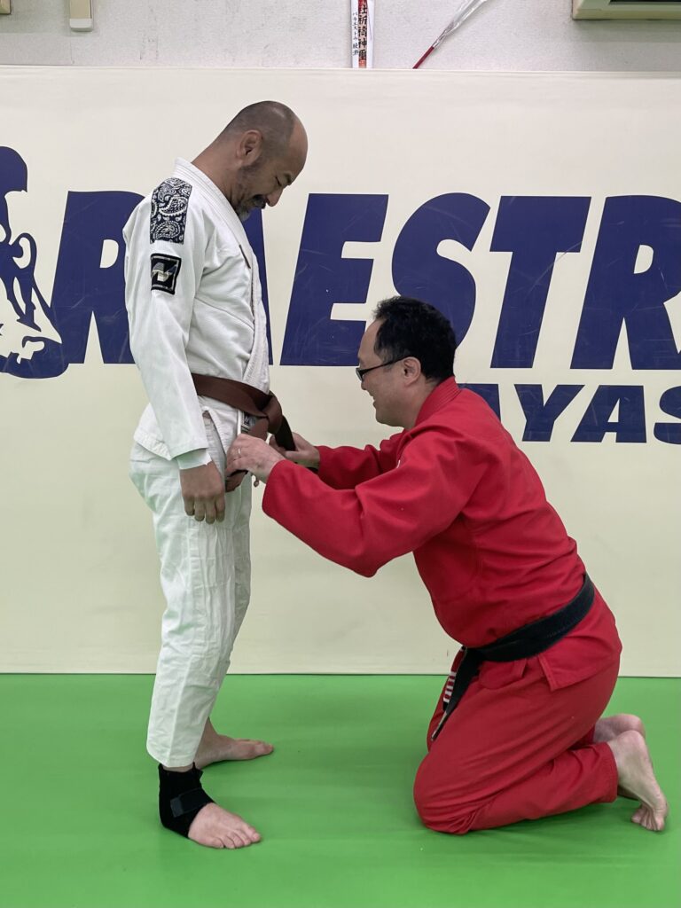昨日のパラエストラ綾瀬・柔術クラスにて、瀧澤さんの腰に茶帯を巻きました。