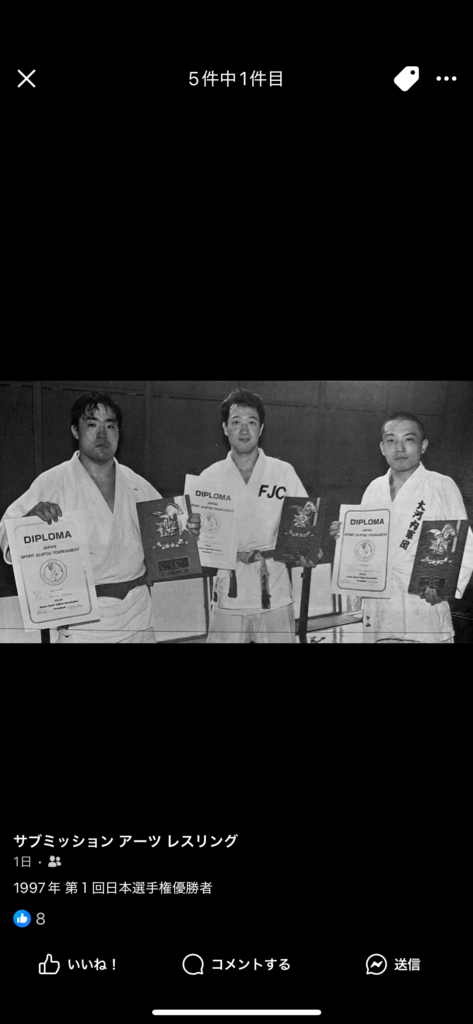 S.A.W様のFacebook投稿に僕の若い頃の写真がありました。スポーツ柔術の世界大会で3位、全日本で優勝した時のものです。まだ科研製薬の研究員で藤枝在住の頃ですので25歳位だと思います。