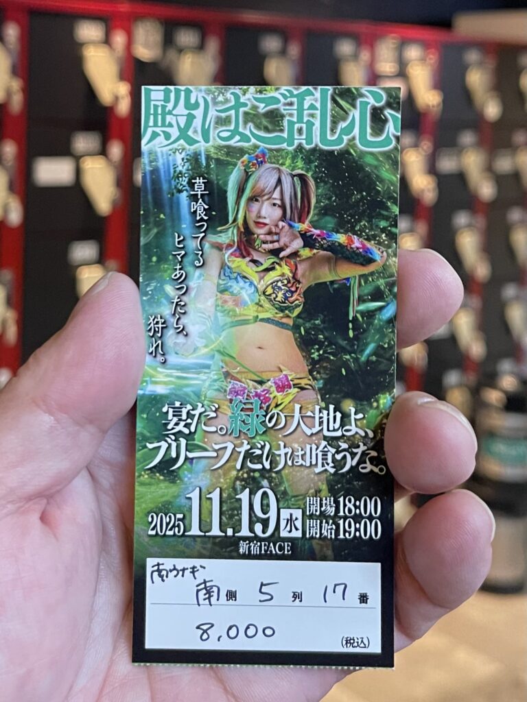 本日は綾瀬キッズ柔術指導後に新宿FACEへ。今回はMMAやキックではなく、ウナギ・サヤカ選手のプロレス自主興行が目的です。