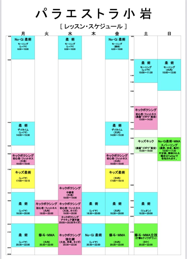 12月のパラエストラ小岩・綾瀬のクラススケジュールです。