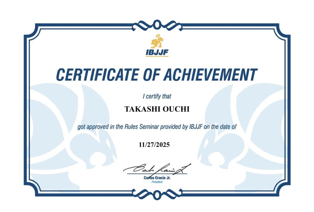 50/50ガードでのラペラ膠着等、今回もルールへの理解がより深まり大変為になりました。試験も無事合格。さっそく道場で皆に伝えていこうと思います。