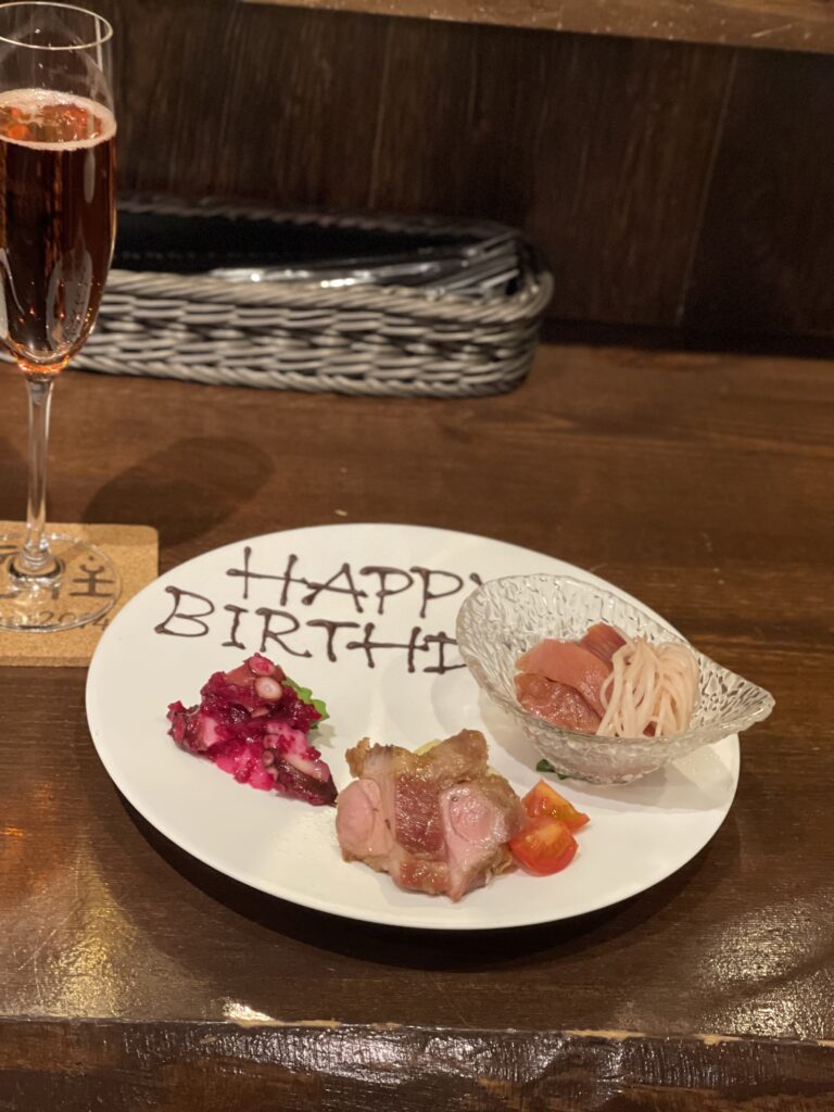 誕生日プレートはデザートではなくおつまみ盛り合わせ。