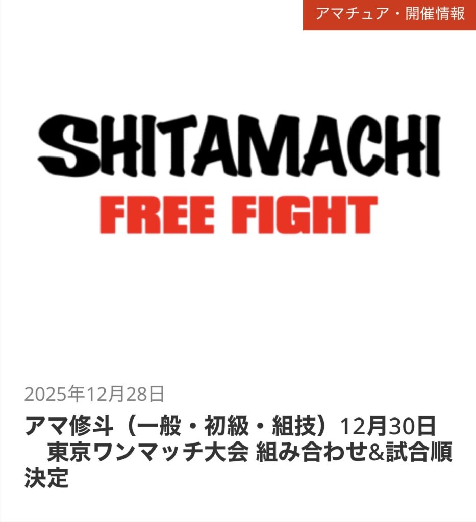 明後日12/30(日)に綾瀬の東京武道館で開催される下町フリーファイト11の組み合わせと試合順が発表されました。