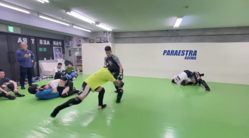 ROOTSのルミナ代表と共にプロシューターのアキヒロが選手4名を連れ出稽古に来てくれました。実はアキヒロは嘗て小岩で数年練習していた時期があり、その縁で今も出稽古に来てくれます。