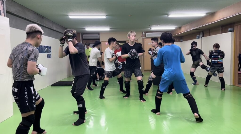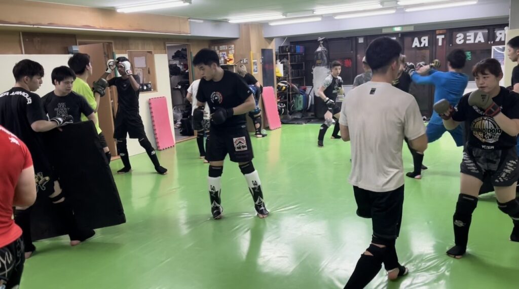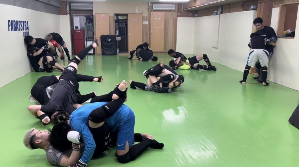 パラエストラ小岩・火曜夜は前半がキック初心者、後半がMMAクラスです。昨夜は半数がプロ選手でしたが入会2ヶ月の初心者や小中学生も参加してました。