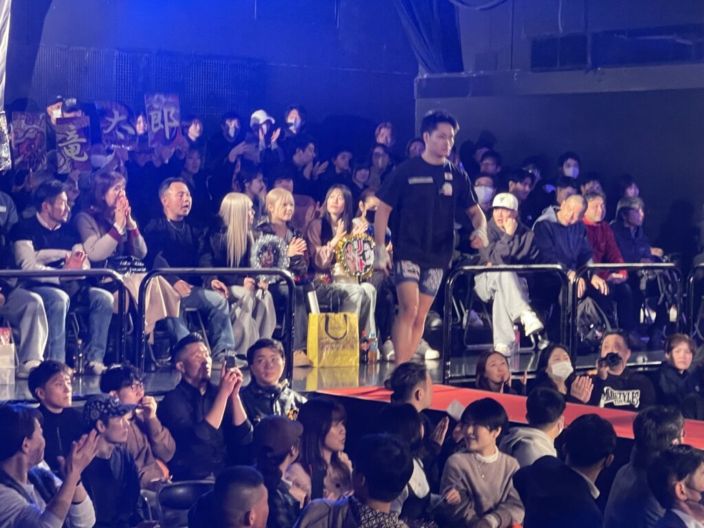 御前君はスタンドでコーナー際で膝を当て、首投げでテイクダウンするも、両ラウンド共にポジションを奪われ0-3判定負けでした。