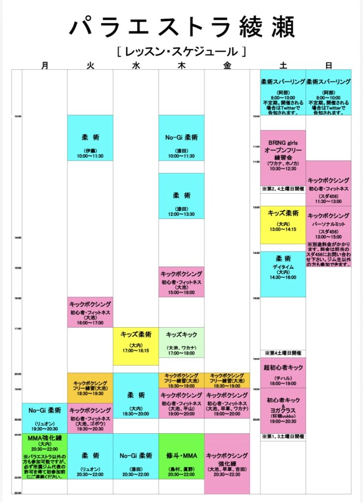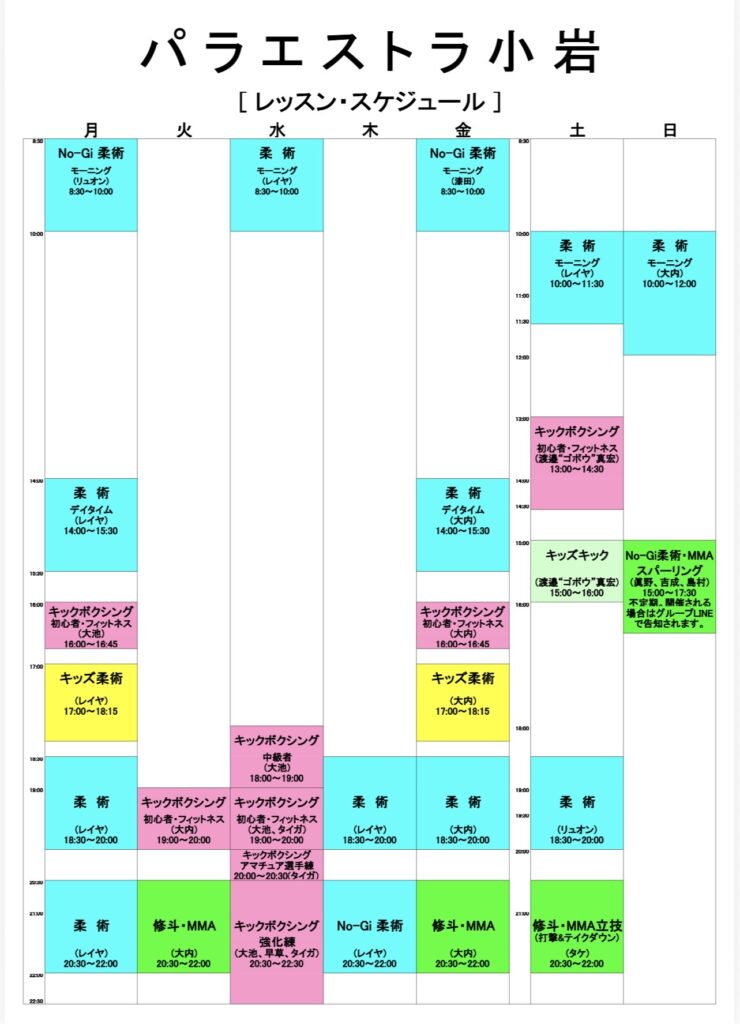 3月のパラエストラ小岩・綾瀬のクラススケジュールです。